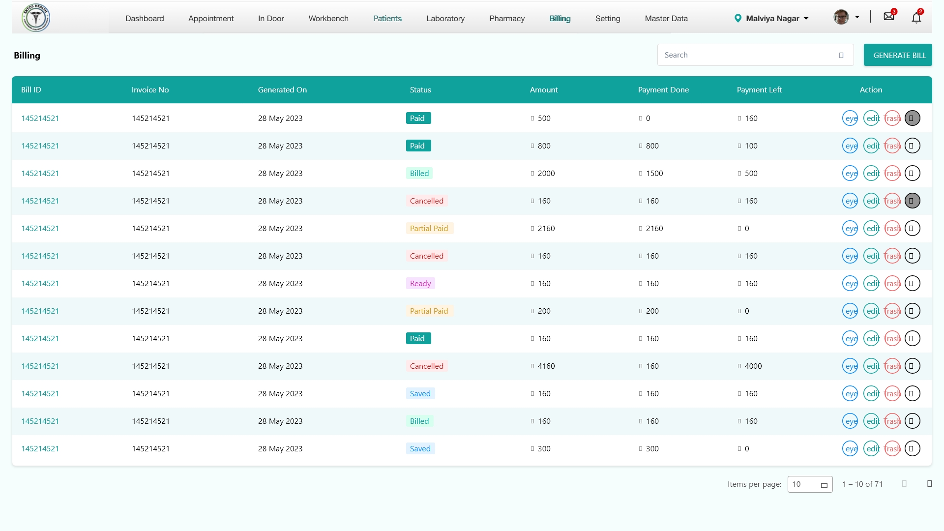 👉 Generate bills with a single click, view unpaid dues, and take control of your healthcare finances—seamlessly.